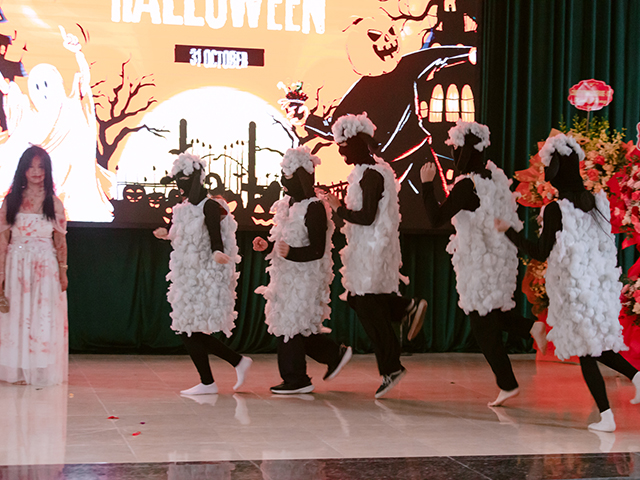 Trung tâm Ngoại ngữ – Tin học: Bùng nổ sắc màu Halloween tại Gala chào tân sinh viên K15