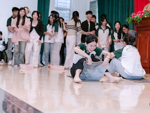 Bên cạnh đó, các trò chơi giao lưu hấp dẫn cũng khiến sân khấu bùng nổ tiếng cười. Đặc biệt, trò chơi “Đua thảm” là một trong những phần thi sôi động nhất, nơi các đội chơi cùng nhau “bứt tốc”, tranh tài trong không khí vui tươi và gắn kết.